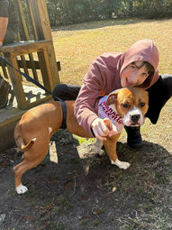 Paws Around the Pee Dee Event Feb 14, 2026: Smile! Hey y’all it’s me Clank, and I got to go out on an adventure around town with my friend Churro during the Paws Around the Pee Dee Palentines Day event. We visited Purrs McBarkin', and then we went to Kalmia Gardens for a nice nature walk. I LOVED everything! I met so many new people, even kids, and made friends with them all. Once I got some energy out I did okay leash walking but sometimes I needed a reminder to walk nicely…there were so many good smells and things to see! My handlers said I’m friendly and loving. I take treats gently, I rode good in the car, love to snuggle and give kisses, and I’m smart too! By the end of my adventure I was getting in and out of the car on command. I’m looking for my new home, can you help me, please?