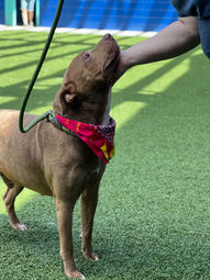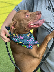 More about Elizabeth May 27, 2025: Elizabeth, 2 year old, 52lb heart worm negative terrier/lab mix is in need of rescue. She arrived with her 2 pups who have found homes. Now it’s Elizabeth’s turn to get out of a kennel and into a home. Elizabeth is a sweet girl; she is not shy at all in meeting people and did well meeting new dogs. After some sniffs she’s happy to give kisses to her canine pals, then start to play. She walks nicely on a leash and responds very well to people. Elizabeth is a beautiful girl, sleek and a nice size for a companion dog. Ask for her today! Elizabeth is located in Hartsville SC.