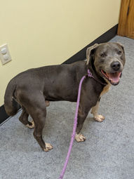1/30/25 Intake: lab/terrier mix, 53 lbs, 2 yrs old, female, HW-, stray. Elizabeth was brought in as a stray by animal control along with her pups Annie and Hallie from Elissa Dr in Society Hill. Elizabeth is heartworm negative.