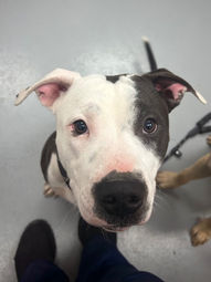10/24/25 Intake: terrier mix, 50.4 lbs, 1 yr old, male, HW+, owner surrender. King was surrendered by his owner, because they can no longer afford to take care of him. He is heartworm positive.