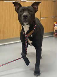 8/22/25 Intake: boxer/terrier mix, 53 lbs, 2 yrs old, male, HW-, stray. Meyer was brought in as a stray by animal control from Block Marlboro Ave in Hartsville. He is heartworm negative.
