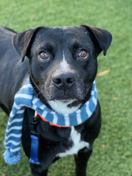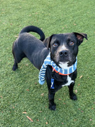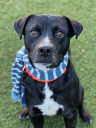 Foster Update Apr 12, 2024: Don't let the adorable factor fool you – Smoke, a special 2-year-old American Staffordshire Terrier mix, has a heart that shines brighter than the snow white "blaze" that adorns his face against his magnificent gray coat. While a neurological disorder gives him a unique, happy-go-lucky gait, Smoke's spirit is anything but unsteady. He delights in galloping across the yard, chasing toys, then enjoys a cuddle session on the couch. He doesn't mind sharing his space with other dogs and often looks to them to snuggle up, too, if they'll let him. Completely housebroken and crate-trained, Smoke adapts easily to his surroundings – a perfect quality for someone seeking a low-maintenance companion. Both of his fosters work full-time, and he has no issues waiting for them to get home without having any accidents. His wobbly walk might be his signature move, but Smoke's zest for life is what truly defines him. He's a dog who thrives on playtime, be it a rousing game of fetch or a refreshing dip in the kiddie pool! This charming dog with a heart of gold is ready to steal the heart of someone special – could it be you? Imagine the joy Smoke would bring to your life with his infectious enthusiasm and unwavering loyalty. We hope someone will choose him and love him the way the volunteers and his fosters have.